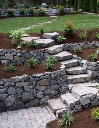 Fonte: Pinterest. Escada para jardim decorado com pedra.